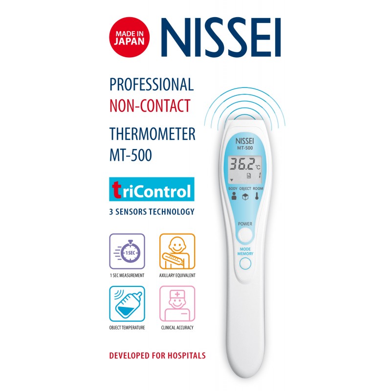 NISSEI Profesjonalny Termometr Bezdotykowy Dokładność Kliniczna MT-500